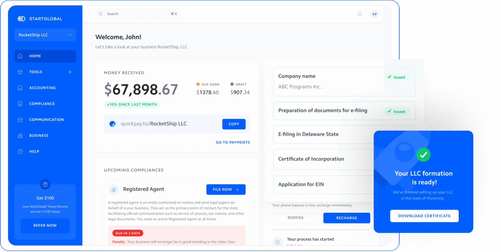 StartGlobal is designed to empower entrepreneurs worldwide, offering the tools and support needed to succeed in the Global market. With backing from visionary investors, we’re committed to making business formation and growth accessible to all.